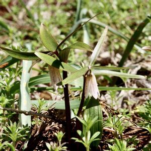 ホソバナコバイモ(細花小貝母) ユリ科 バイモ属 草丈10㎝の小さな妖精が 今年も咲いてくれました 可愛い💕