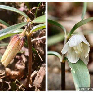 ホソバナコバイモ(細花小母貝) ユリ科 バイモ属 分布…本州(兵庫県以西) 九州(北部、中部) 花期…3~4月 草丈10㌢程 日本固有種 羽根を広げた 天使が空から 舞い降りてきたみたいです🧚♀️