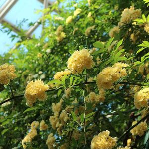 バラの季節が待ちきれなくて、モッコウバラを見に行きました。枝垂れるように咲くモッコウバラは優しい淡黄色のバラ🌹