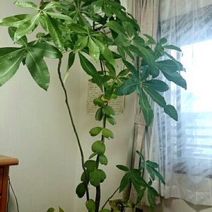 パキラという名の、ホヤ カーリーの支柱(笑) これ以上大きくなったらどうすれば? 「(´へ`;ウーム