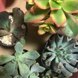少し前に一時閉店するスーパーの花屋さんで格安になってた多肉たち、状態イイし安すぎて沢山狩ってしまいました。 この箱欲しかったから嬉しい💎💕 右端のはフーケリーかな? お店にあった時点で葉が沢山取れちゃってました。 もう増やさないつもりだったのに••• 本当に置き場所無くなってきた💦
