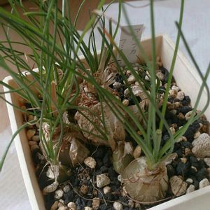 新入りさんその①、アルブカフミリス。 3号サイズで注文したけど品切れで3.5号の子を送ってくれたヽ(*´▽)ノ♪ 玉ねぎみたいやし、ちび○子の永沢君がイメージで出てきたから名前は『ながさわくん』。