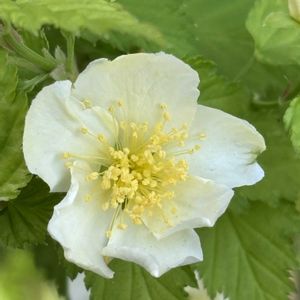 シロバナヤマブキ(白花山吹) バラ科、 ヤマブキ属 シロバナヤマブキとシロヤマブキの違いは ○シロバナヤマブキ バラ科、ヤマブキ属 5弁花、葉は互生 ○シロヤマブキ バラ科、シロヤマブキ属 4弁花、葉は対生 優しげで上品な雰囲気が 好きです。