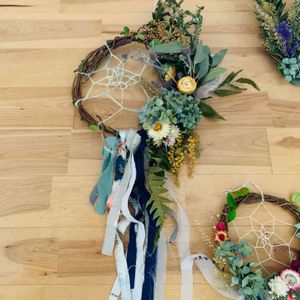 今日のドライフラワーのドリームキャッチャーワークショップ! 次男ギャン泣き😅 みなさんに助けられた🙏🙏 落ち着いてやりたいわぁ😅 これ素晴らしいことに大半が雑草‼️ 恐るべし雑草ドライフラワー‼️ 素敵💕💕