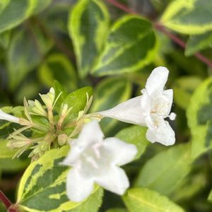 おはようございます😃 ご近所さんのお花です♪ 班入りの葉っぱが可愛い花です🥰