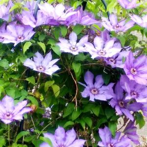 夕方散歩🎵 普段歩かないから いろいろ咲いてるの見て楽しんでます🎵💕 クレマチス✨✨💜 フェンス越えて沢山咲いてて見事です🎶💓 大輪の薄紫色と白の共演✨✨💜❤ 31日までになりました😅 皆様も体調崩さないでくださいませね💝