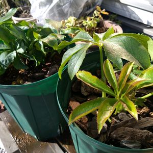 myクリスマスローズ 『鉢植え編』 *dd アプリコット *dd ブラック *dd イエローピコティ *ss ピンクブロッチ 昨シーズン植え替えたあと名前をつけなかったので、どれが誰かわからなくなりました🌿?🌿? そして、どれか1つが夏越しうまくいかず、わずかな根っこに望みを託して養生中です🏥