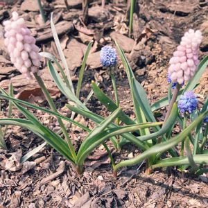 秋に植えた球根達が次々と目を覚ましてます。 ムスカリ・アズレウム。 素敵な水色のドレス✨💍✨