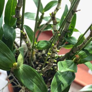 おはようございます。 水曜日の夜勤明け 帰宅して夜御飯中です(o^^o)💦 本日は風が強く寒い岐阜支部です。 ヒュー サムイ- 彡 ∧,,∧ (´・ω・) ミミミミミミ彡 じ┴"J 縁側のデンドロビウム キンギアナムの🌱新芽が出てきました〜(°▽°)W まだ高芽になるのか、花芽になるのかわかりません💦 花芽にする為にしばらくお水あげるの我慢しよう… ドキドキ…(*^_^*) 素敵なお花沢山咲きますように… それでは… 皆さま 本日も素敵なお花との出会いがあります様に… 💎*💛🎀.❤.🎀💛*💎 ❤. Have a nice day.♥ 💗*☀🌻.❤.🌻☀*💗