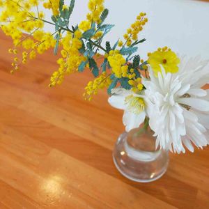 庭から拝借。 アネモネ、クリスマスローズ、 ミモザ。 ミモザは2年目で初めての花