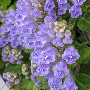 💜家の塀と通路の隙間に咲いているタツナミソウ 鉢から飛び出して中よりもこの隙間が居心地よいようです 綺麗な薄紫 💜可愛く咲いています