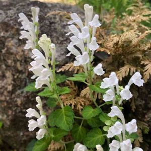 花友さんから頂いたタツナミソウ。 仙台の主人の社宅のベランダで、咲いています😊 タネがぷつぷつ弾けて増えそうです😊 白は珍しいのかな?