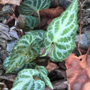 山で出会った 葉の紋様が見事で美しい 斑入りシハイスミレ🥰
