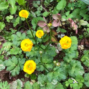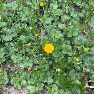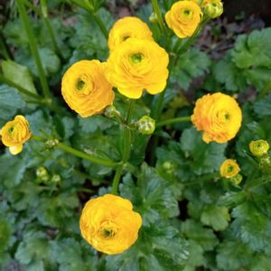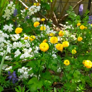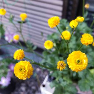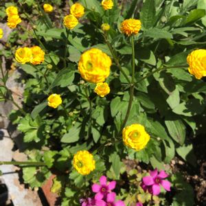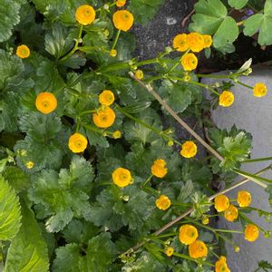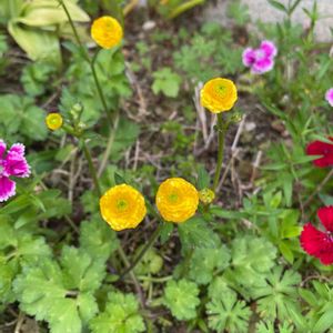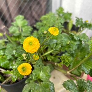今日の庭から ラナンキュラス ゴールドコイン咲き出しました。 ランナーを延ばして繁殖中です😅