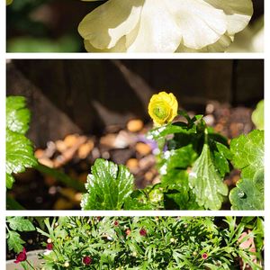 上から 頂いたラナンキュラスラックス ラナンキュラスゴールドコイン咲き出しました ボンザマーガレット切り戻し後、咲き始めました