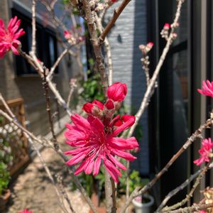 我が家の菊桃やっと咲きました〜‼︎😍 花数は少ないですが😅