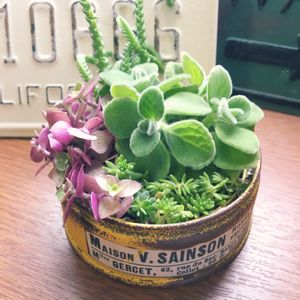 少し前のモノですが 多肉のカリシアレペンシス。 色合いが優しくて好き💕 自作のリメ缶にinしてみました。