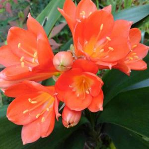 今日のウォーキングで 見かけた花🌸さん逹 よそ様の軒先で🌸咲く クンシラン オレンジ色の花🌸