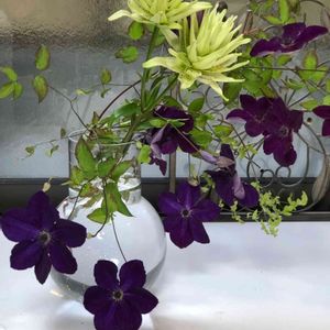 お花好きのお友達から、珍しい八重の百合(切り花)を頂いたので、クレマチスと一緒に飾ってみました🥰 百合は「ミモリ」と言うそうです。