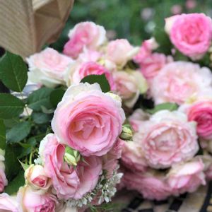 ピエールさんをたくさんカットしました✂️ ガーデンテーブルの上でパチリ📱✨ 今日は、午後から豪雨の予報だったので、朝からたくさんカットして、お友達に差し上げました。このくらいの蕾混じりの時が可愛い💕と思うのです。 喜んで頂けると、育て甲斐があり嬉しいです😊