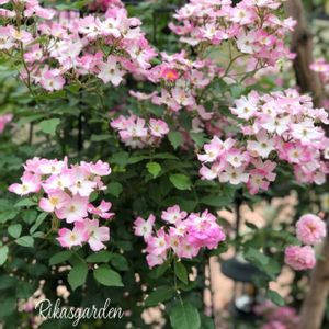 バレリーナ💕 ガレージ上の左側のオベリスク。 以前は玄関横に地植えしていましたが、「通る度に当たってトゲが痛い」と家族に不評だったので、今は鉢植えにしオベリスクにまとめています。 可愛いんだけど、トゲがきついは、小さくまとめて少し離れたところから眺めるようにしています。