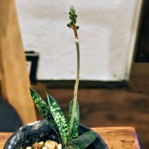 買おうか悩んでて、でもせっかくだからお迎えした子。 くんぞーさんといえばサンスベリアなのでどれか欲しいなとざっくり思ってたけど、種類の知識皆無🙄 なので見た目でこちら💁♀️ サンスベリアのクレオパトラ。 この子、サンスベリアを集めてらっしゃる方は全員持ってるといっても過言ではない有名な子だそうです👀 縁取りが赤くて、模様があってかわいい!そんな理由で選びました😂 あまりでかくならんといてw 次はホント考えてもなかったガステリア。 わたし推しのどーらくさんにお会いできたので、色んな質問ぶつけてたらガステリアの良さを切々と語っていただいたので買うしかない!てことでお迎え。 わからん時はインスピレーション!てことでこちら💁♀️ ガステリアの美鈴富士🗻 斑入りぽくて可愛いよね、なノリでお迎え😂 植え替えたら子株が取れたので、お得感満載🉐 元々唯一100均のガステリアを持ってたんですが、日焼けして真っ赤😅 比べると柄も厚みも違ってええチョイスしたなと自画自賛👏 ホントはもっとレアなのあったかもだけど、判断できない時は見た目買いでオッケーと思っます🙆♀️ そんなわけで、数万飛んだのはそんな理由からだったりもします😂