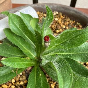 【ガステリア・子宝】 こちらはアップの写真。 ね、赤すぎるでしょ😅 みどり色に戻るには時間かかると思いますが、とりあえず希望をまって室内へ🏠 🍏