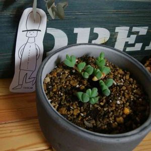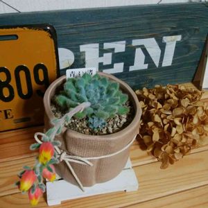 cafeのオーナーさんから植物を是非と頼まれたので😊萩焼きの器で作ってみました😆