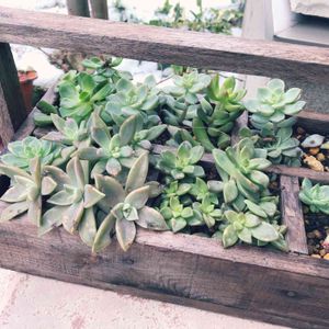 お外チーム☃️ 雪の中に埋もれてた多肉棚におりました❄️ それほど大きな被害はなかったかな❓ ちょっと葉が汚いけど… 葉挿したものがごちゃごちゃに大きくなって窮屈です。お引越しせねば🪴