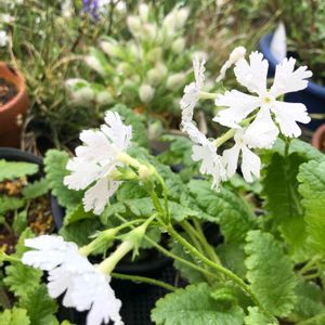 山野草「日本サクラソウ」 無事に冬越し待望の可愛らしいお花が🌸顔を見せてくれました。 ほかの品種はまだです。 毎年増えてもいつの間にか消えたりで鉢植えは難しい💦