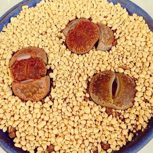 嬉しすぎて連投すみません! ↖︎↙︎↘︎大当たりの100均の大きすぎるリトープス&七宝樹💓💝💕🎉😂㊗️ ↗︎孫達からのお土産😍💝🎉