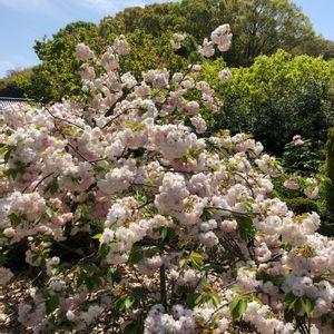 八重桜 ぼんぼりのような大きな塊。 空の高い位置で、咲き誇ってる。 十年以上まえから、眺めてきた。 八重桜と呼びながら。 詳細な名前があるみたい。 できれば、知りたいな。 候補は 松月。 楊貴妃。 ??? 🏷❤️桜リレー♫ 🏷桜(さくら)リレー に参加します。 花友のわーちゃんから教示戴き、 八重桜・松月と、同定します。
