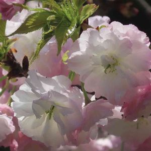 (⊹︎^◡︎^)ノo.♡゚︎。*こんにちわぁ~*。♡︎ さくら🌸桜🌸サクラ ソメイヨシノは終わってしまいましたが、いろんな品種の桜が楽しませてくれています🎶 松月🌸 松月(しょうげつ)は淡紅いろんなで優美な桜てす💖 満開になるとほぼ白色になります。 花弁数は21〜26枚で、花びらの先端に細かく切れ込みが入ります。 花梗が垂れ下がるように咲きます。