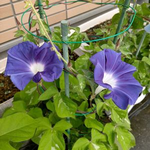 日本朝顔の藤娘 6月の初めに双葉の小さいポットを買ってから2か月半、ちゃんと開いて咲いている姿を初めて見られました。なかなか綺麗な紫🟣色です。 今朝の8時ぐらいまでは曇天でしたので気温もちょっと楽な感じでした😊私も、お花達も。