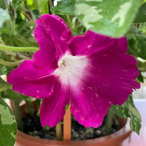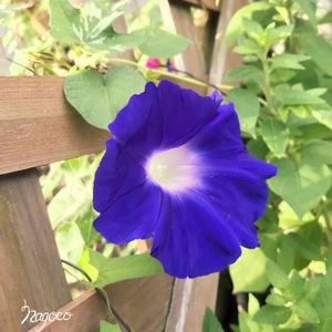 19💜日本朝顔٩(๑^o^๑)۶ おはよう☀ 今月(月一のお届け便)の鉢植えは、朝顔でした!少々普通すぎるな~と思っていましたが、3種入っていて、葉っぱが斑入りで、 楽しめそうです💜❤️ 毎日咲いて、萎むから、シャッターチャンスが難しいよ*ღ*