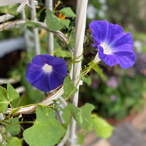 清流 朝顔が今頃咲きました❣️ ちょっと9月中旬て遅くない?? そのせいか、サイズも5センチ位で小さ目な感じ。この朝顔は大きめなはずだけど、西洋朝顔並みに小さ目でした…😅💦