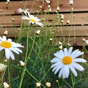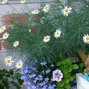 |ョ'ω'〃)おはようございます♪ 今日の天気は曇り時々晴れかな?? picは細葉が美しいマーガレット チェルシーガール 日の当たらないところに植えたので弱々しいですが花が咲き始めました*(ू•ω•ू❀)* 今日もガーデニング日和ですね 楽しい時間をお過ごし下さい♡