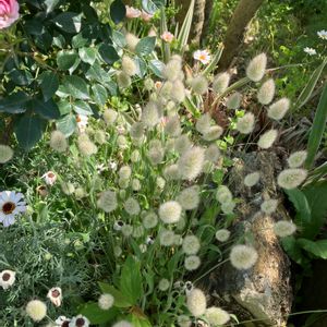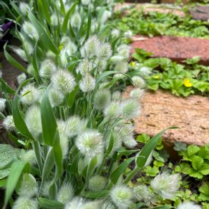 🏷木曜モフモフ ポポラスの鉢に 同居中のモフモフちゃん🤍 ラグラスバニーテール🐰 毎年 こぼれ種で 出て来ます💕
