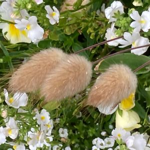 ラグラスとライスフラワーのドライフラワーがたくさんできてきました🙆 一部染色も完了。 今回はラグラスのおチビちゃんを纏めて…リースにしてみました。 ベランダの植物 オルレア・ライスフラワー・メラレウカレッドジェム・エレモフィラニベア…も 入れて。。