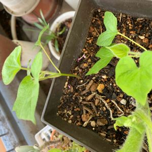 あさがお? 植えた覚えのないのに芽が生えてきた🌱🌱なんだろうなー。ただいまグングン成長中