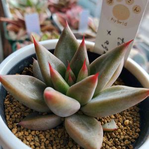 トリマネンシス×アガボイデスロメオ 飯塚農園さんのぷうさん交配苗GET‼️ 真っ赤な爪にウォーターマーク♥️ 両親の良いとこ取り٩(♥ε♥ )۶ ロメオさんたちツルツル葉はいつもハダニでブチャイクにしてしまうけど、この子の肌はちょっと違う(⊙⊙)‼ 大丈夫かな⁉️ 成長楽しみ~💕