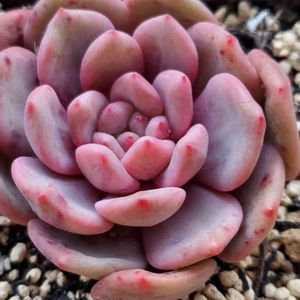 エケベリア🌵 ラパン(ラウンンシス×ラウイ) 薄いパープルにピンクがかった白粉をまとった薄葉が綺麗です💟💕💕 立春になったのに、寒さ戻って今朝の気温-2.3℃😰