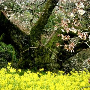 樹齢300年を超える山桜🌸 菜の花と共に美しく咲き誇る🌸