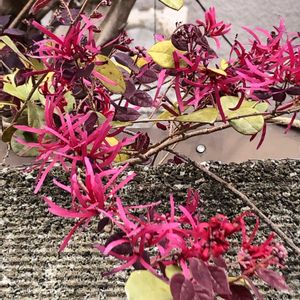 🏷木曜日は桃色 🏷木曜日は木に咲く花 🏷木曜モフモフ 🏷モダンな木曜日 🏷ピンクワールドへようこそ ベニバナトキワマンサク(紅花常盤万作)💟 マンサク科トキワマンサク属 細長いリボン🎀状の可愛らしい花🌼 風🍃に揺れ綺麗です✨✨