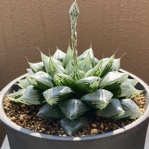 オラソニー交配種の花芽🌱 これまで札落ちハオルチアでしたが、今日からオラソニーを名乗ることにしました😅 多分そう。きっとそう。 この子の花芽は太く長いんです。 今季は何m伸ばすかなー♪