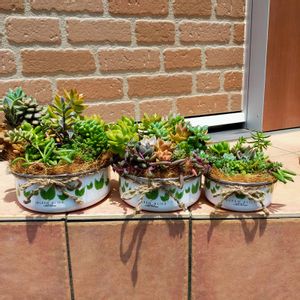 使わなくなったホーロー鍋で多肉寄せ植え三兄弟を製作♪ 鍋なので錆には強いけど熱伝導が良いので蒸れがネックになるかも🤔