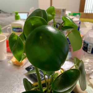 買ってから全く変化のなかったペペロミア、ここにきて新芽出してる🙄