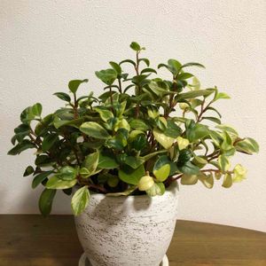 昨日🛒スーパーのお花売り場にて🌿 鉢には『観葉植物』と言うラベルのみ…🤔 何と言う植物でしょーか?('_'?) 教えていただけると嬉しいです🎵 観葉植物は詳しくないのに😓 葉色がとても綺麗✨だったのと 罪悪感を感じない360円👛に 心惹かれてお迎えしちゃいました(*^^*) 🛒レジ前は誘惑が多いです😂 ☘️アイコさんとみーさんに 『ペペロミア』と教えていただきました✨✨ ありがとうございました(*- -)(*_ _)ペコリ *斑入りペペロミア"オブツシフォリア" /Peperomia Obtusifolia 'Variegata'