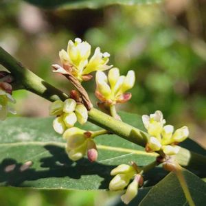 大阪公立大学附属植物園で。 月桂樹の花が咲いていました。スパイスとしてローレルとして利用されたり、月桂冠にも利用される葉です。 花期が4月と短いようで、よく出会えました。 雌雄異株と聞きますが、この花は雄花でしょうか?