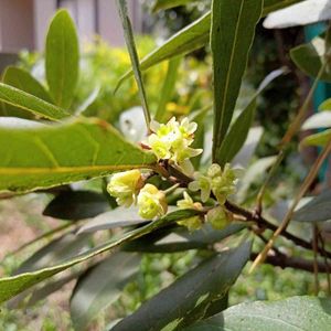 今日の庭から 月桂樹の花、咲きました😉